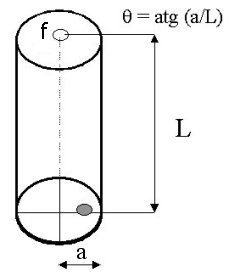 Considerato un cilindro con un foro f, se la sorgente non produce raggi che incidono normalmente alla superficie si avrà uno spot luminoso decentrato sull'altra base. La relazione che lega la coordinata dell'immagine a, il lato L del cilindro e l'angolo della sorgente θ è :